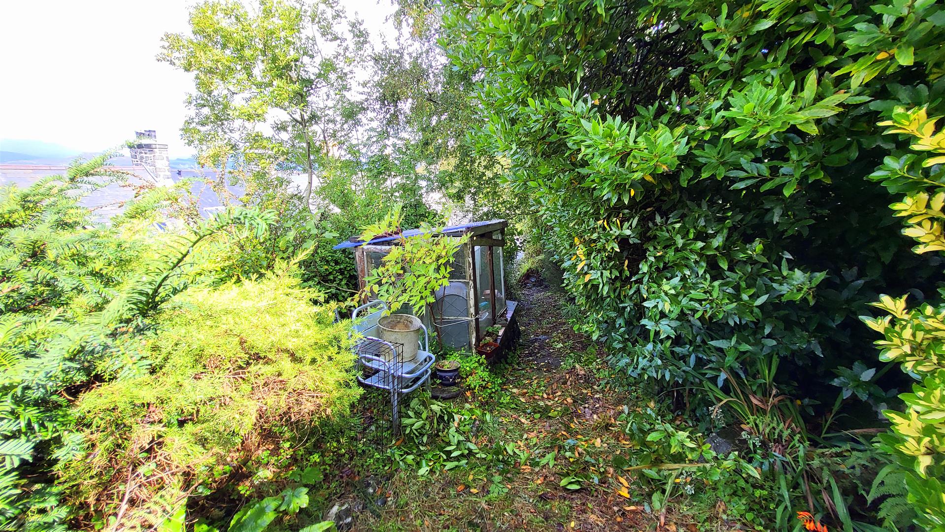 To the side is an enclosed flagged area with steps leading up to the generous garden above. This is mainly laid to lawn with mature planting and trees. There are distant sea views and the summer house here is the ideal spot to sit and get away from it all.