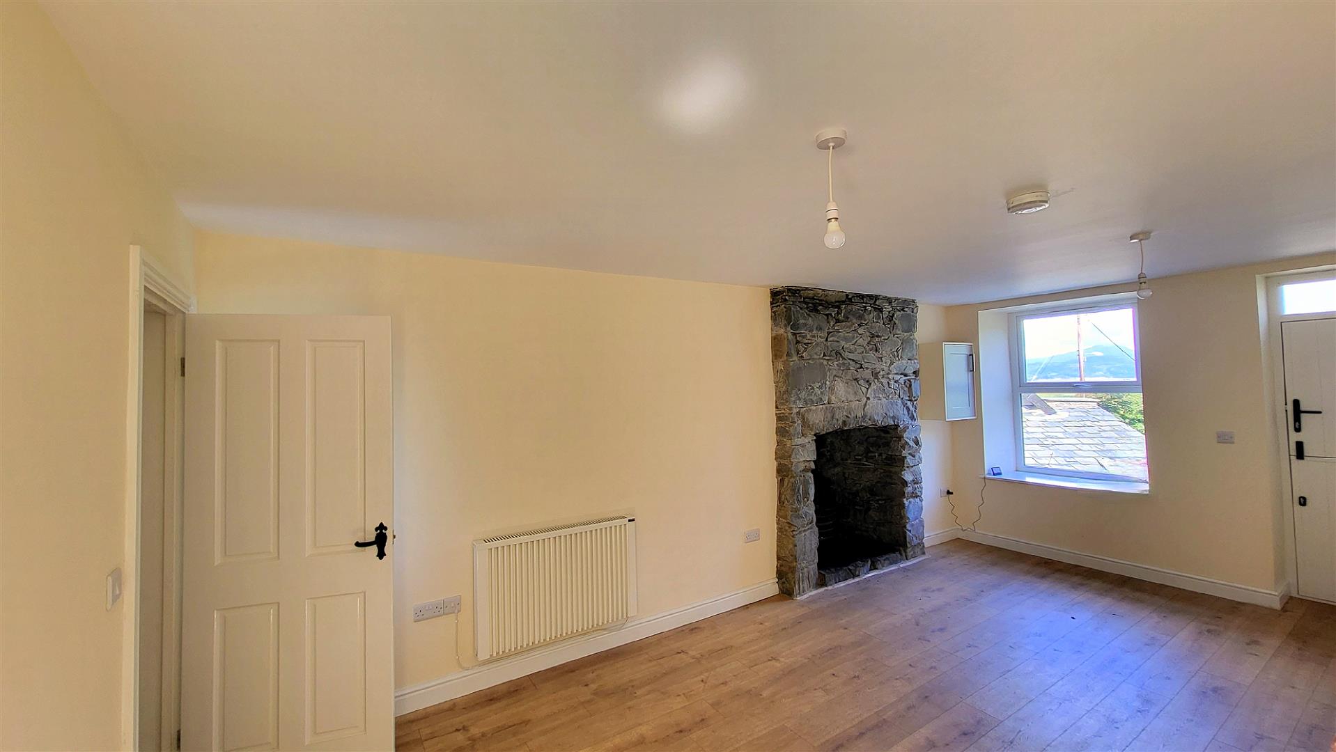 uPVC "stable" style front door; wooden laminate flooring; 3 x uPVC windows, 2 x electric radiators; feature stone fireplace, door leading to