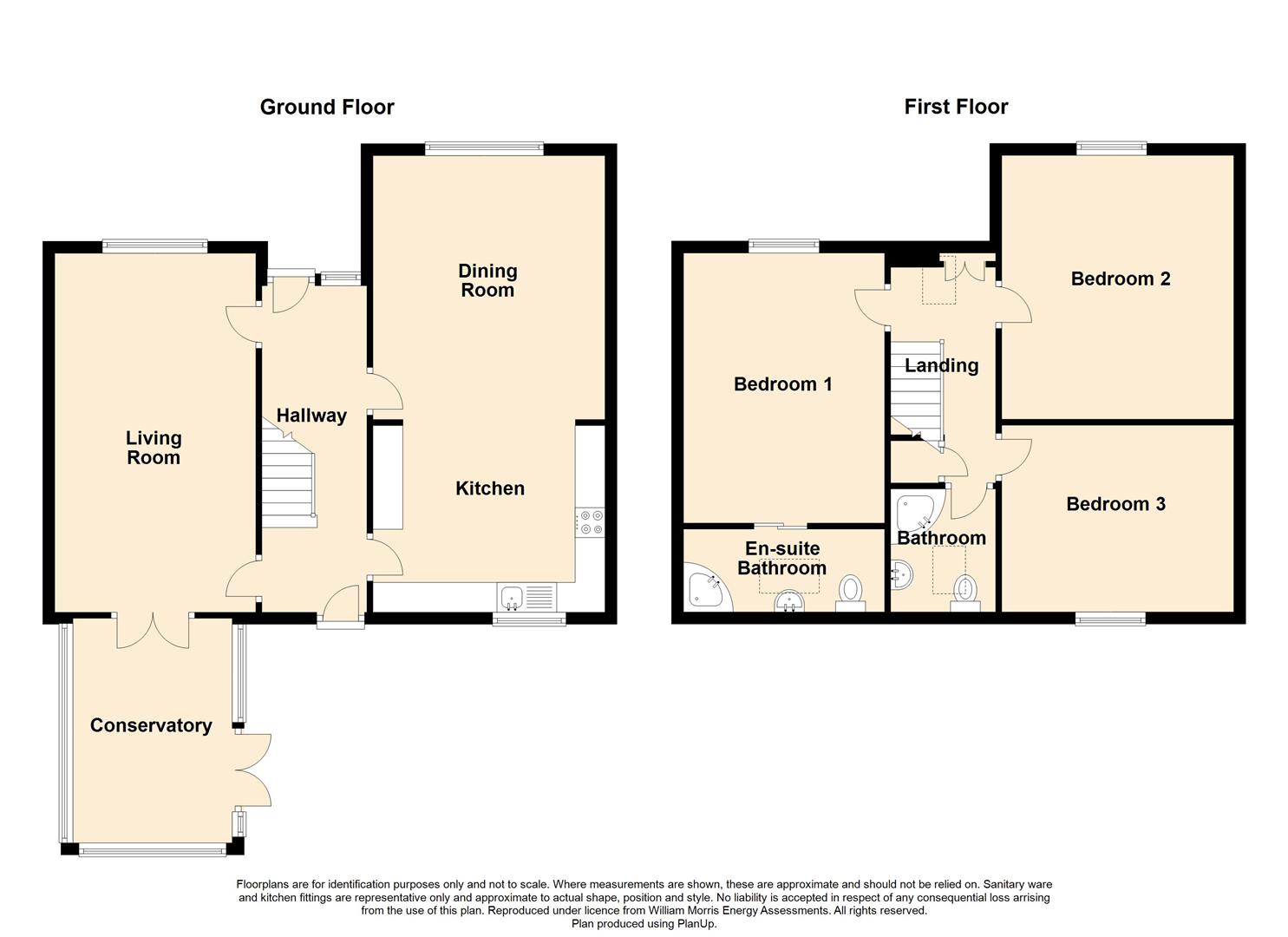 The property briefly comprises a spacious lounge fitted with a wood burning stove, with a door leading to a light and airy conservatory and an open plan kitchen and dining room. To the first floor you have 3 double bedrooms, with the master bedroom benefitting from en-suite facilities with a corner bath and the separate family bathroom benefitting from a shower cubicle.