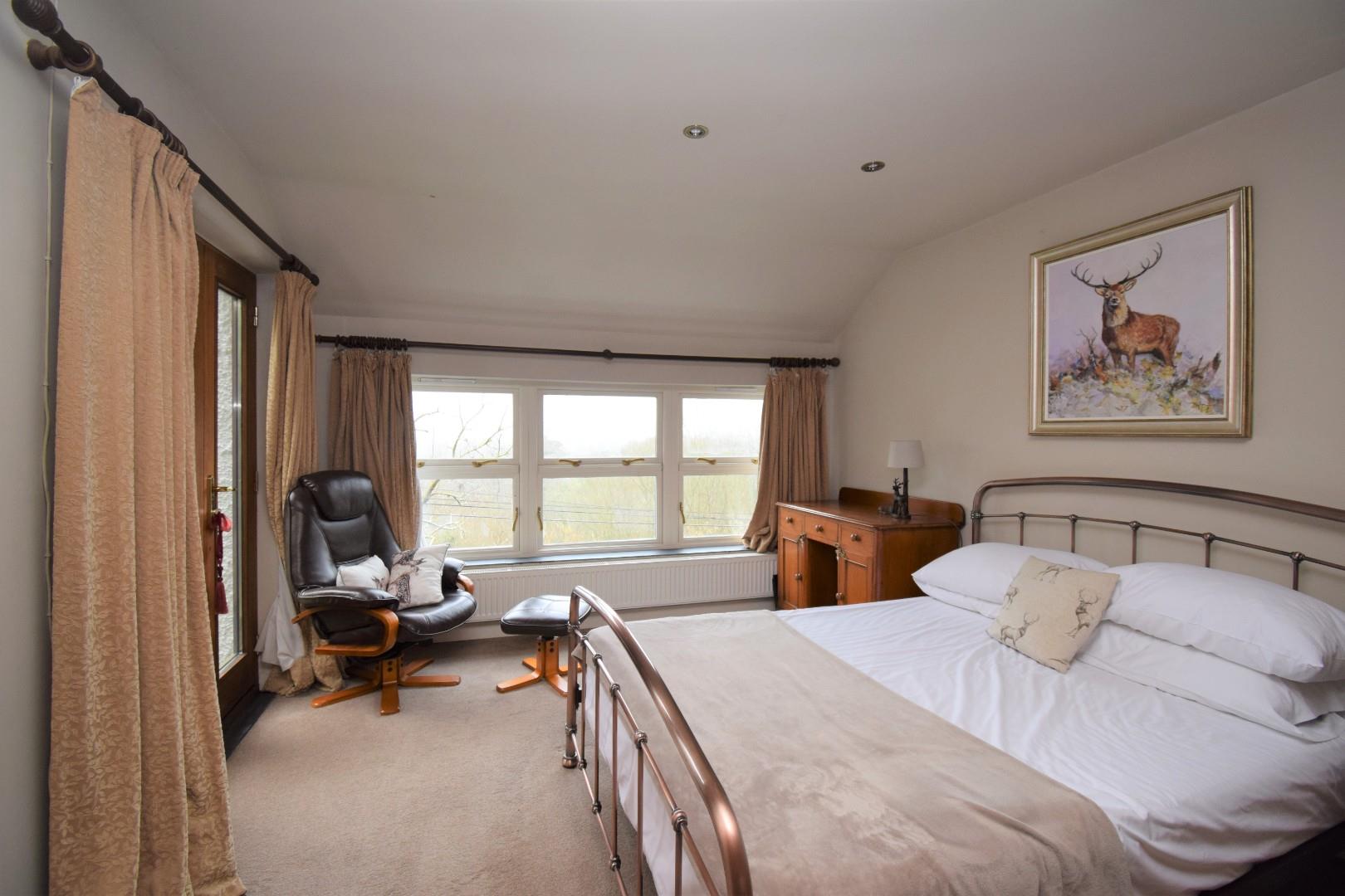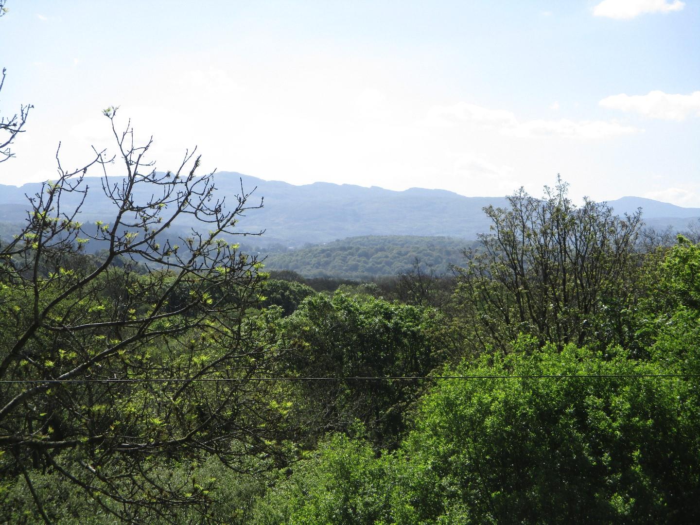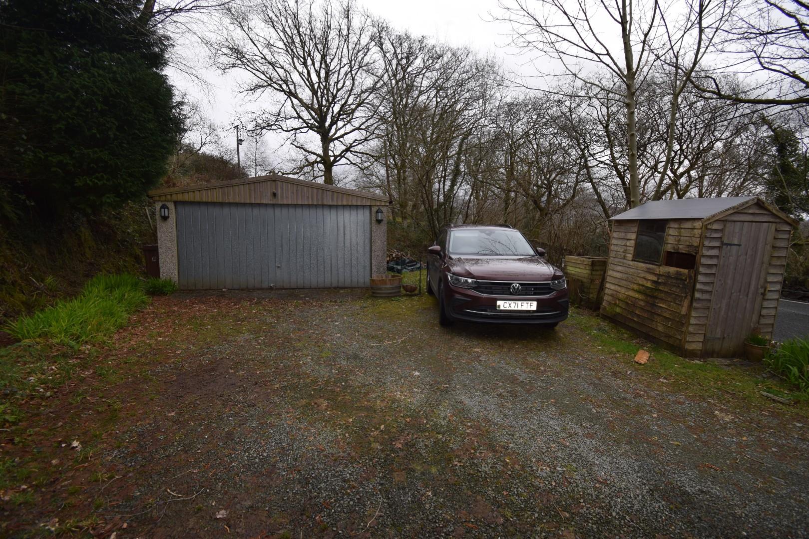 Extensive woodland garden with mature trees, a variety of shrubs and plants, slate paved and gravelled paths, paved patio, ornamental fish pond, timber summer house, timber shed with light and power connected, oil storage tank.; outside lighting; elevated garden beyond enjoying magnificent views