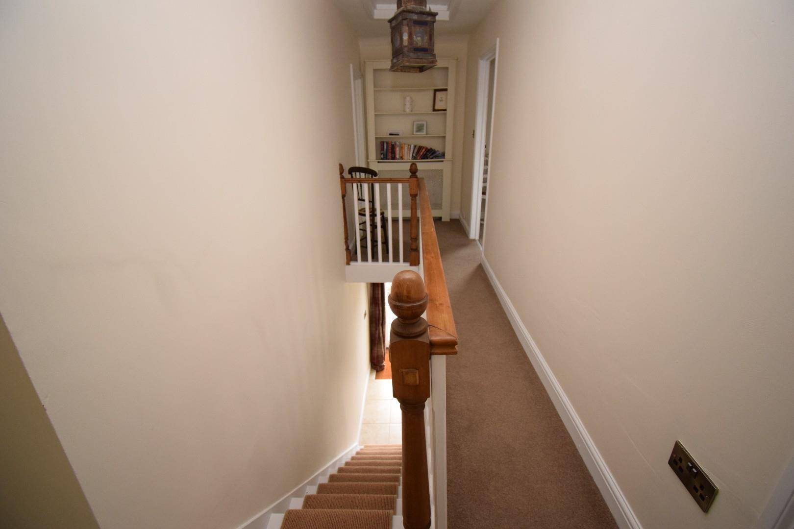 with radiator, second radiator with cover and fitted shelves above, ceiling access hatch to roof space