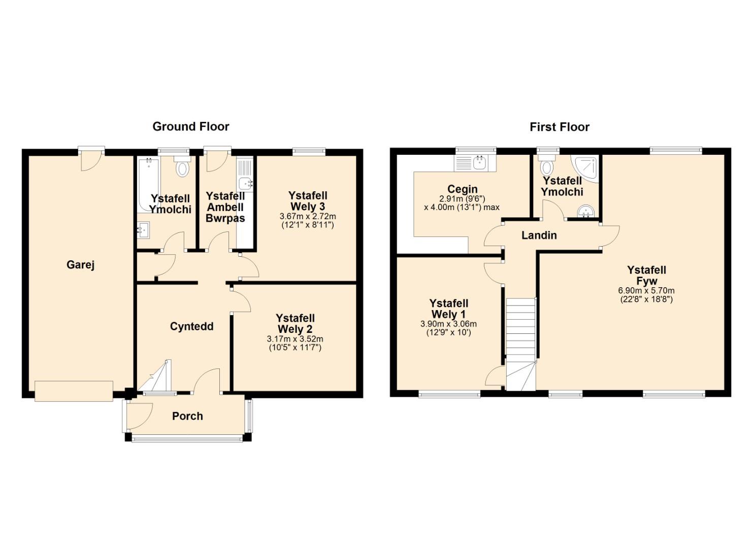 Mae gan yr eiddo ddigon o le parcio oddi ar y ffordd ar gyfer hyd at ddau gerbyd, heb sôn am y garej sydd hefyd yn gallu cynnig lle parcio neu storfa. Mae gardd daclus o flaen y ty yn ogystal â gardd gefn sy'n cynnig noddfa breifat i fwynhau'r gofod awyr agored. Gall y gerddi fod mor gynhaliol ag y dymunwch neu'n gyfle perffaith i'r rhai sydd â bysedd gwyrdd.