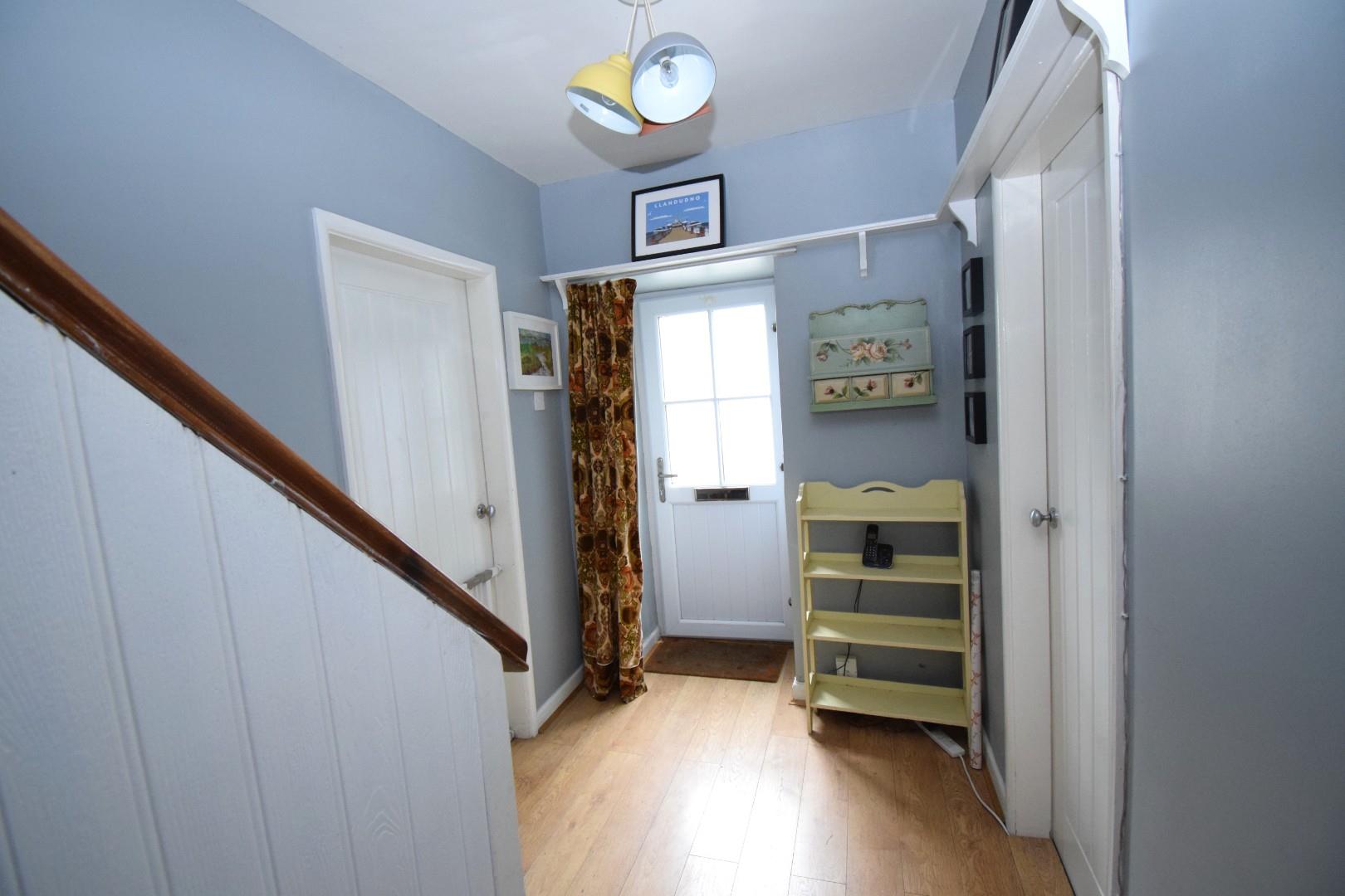 Double glazed door opening into the entrance hall, staircase, Oak veneered flooring and 1 radiator.