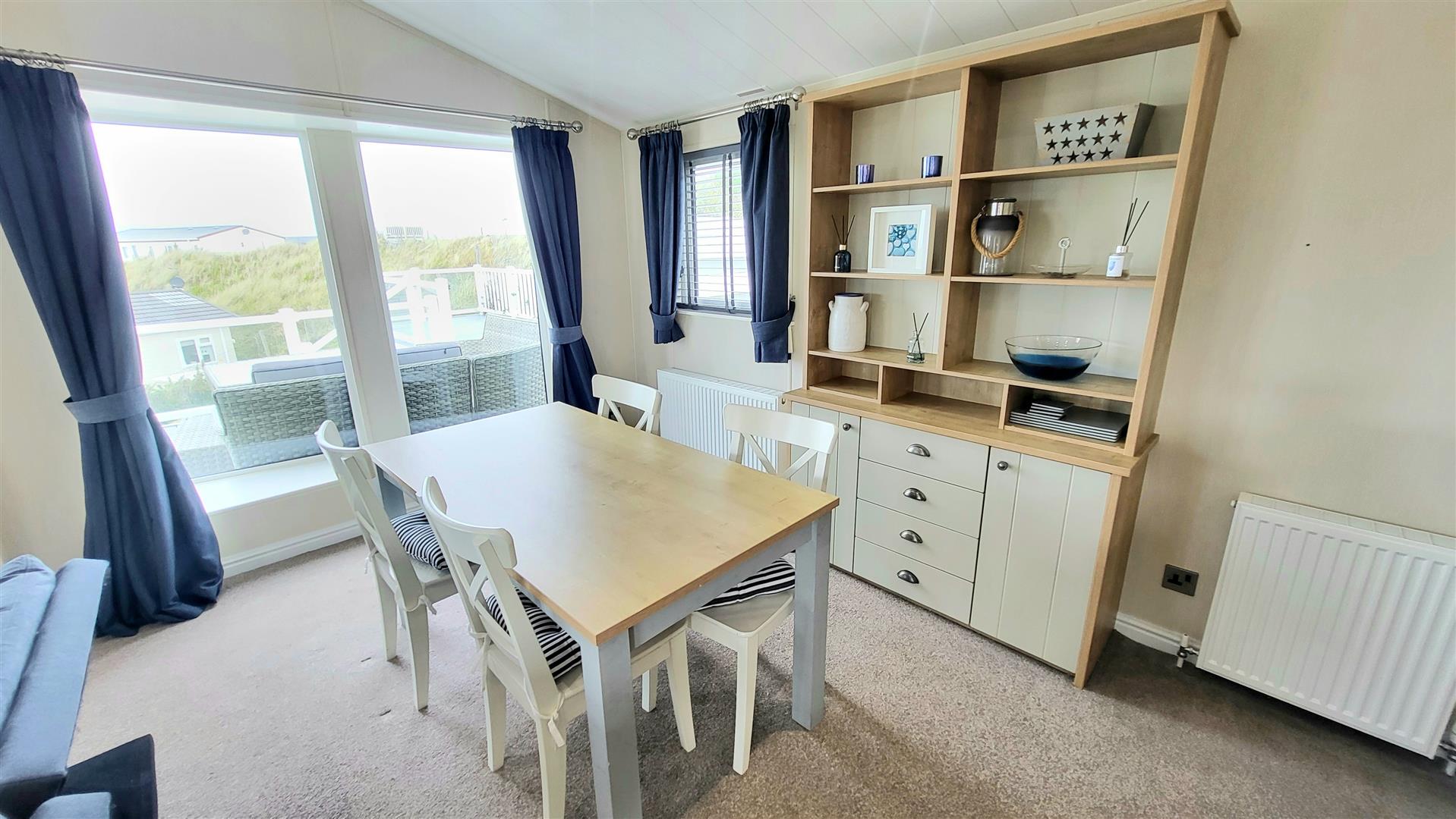 35 Barmouth Bay - a luxury, 2 bedroom lodge 2019 with full wrap balcony situated in a privileged perimeter position overlooking the sea. The "Willerby Portland" offers stylish and opulent open plan living area and boasts a comprehensive "Shaker" style fitted kitchen with high quality integrated appliances, a generous dining area and relaxing lounge with doors opening onto the balcony for indoor/outdoor living. The master bedroom includes ample storage with dressing area and en-suite and the second bedroom benefits from a large walk in closet. The quality continues in the family bathroom. Externally the lodge has its own private garden - the perfect spot to dine alfresco in the summer and star gaze during the winter months.