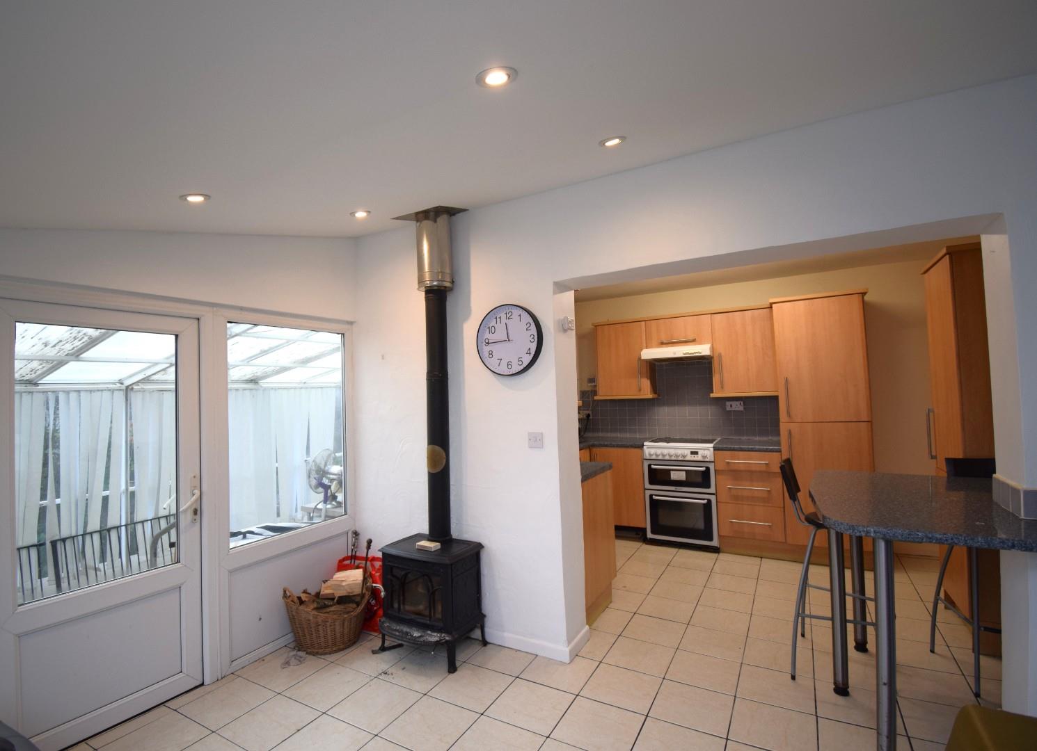 With log burner, downlights and double doors to front and separate double doors out to lean-to utility area. With triple aspect.