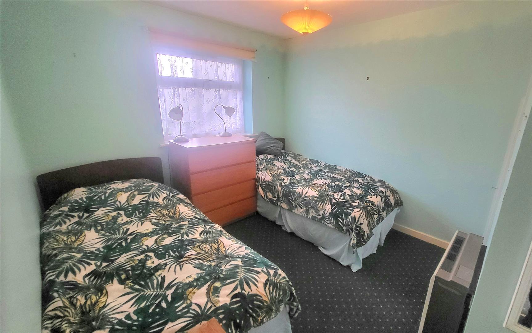 Double bedroom, carpeted, single built-in wardrobe with cupboard space over, electric night storage heater, uPVC window to front aspect