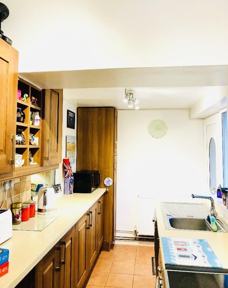 Spacious and well appointed with large understairs cupboard, stainless steel sink and drainer. Plumbing for washing machine, dishwasher and space for full size oven and fridge freezer. Plenty of fitted cupboards, built in wine rack, radiator and light fittings. uPVC windows and door that leads out into a lovely courtyard, which has a storage shed. This also houses the recently installed oil tank and Worcester Bosch boiler system.