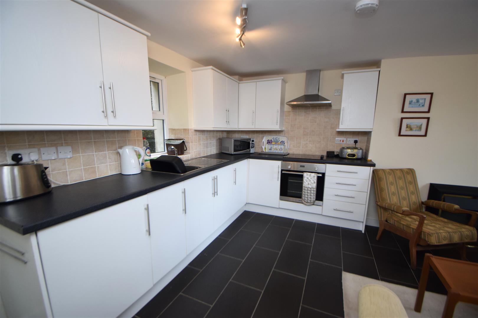 Upon entering, you are welcomed into a bright and airy open-plan living space, where a modern fitted kitchen seamlessly integrates with the reception area. The dual aspect windows allow natural light to flood the room, creating a warm and inviting atmosphere. This space is perfect for both relaxation and entertaining, providing a comfortable environment for everyday living.