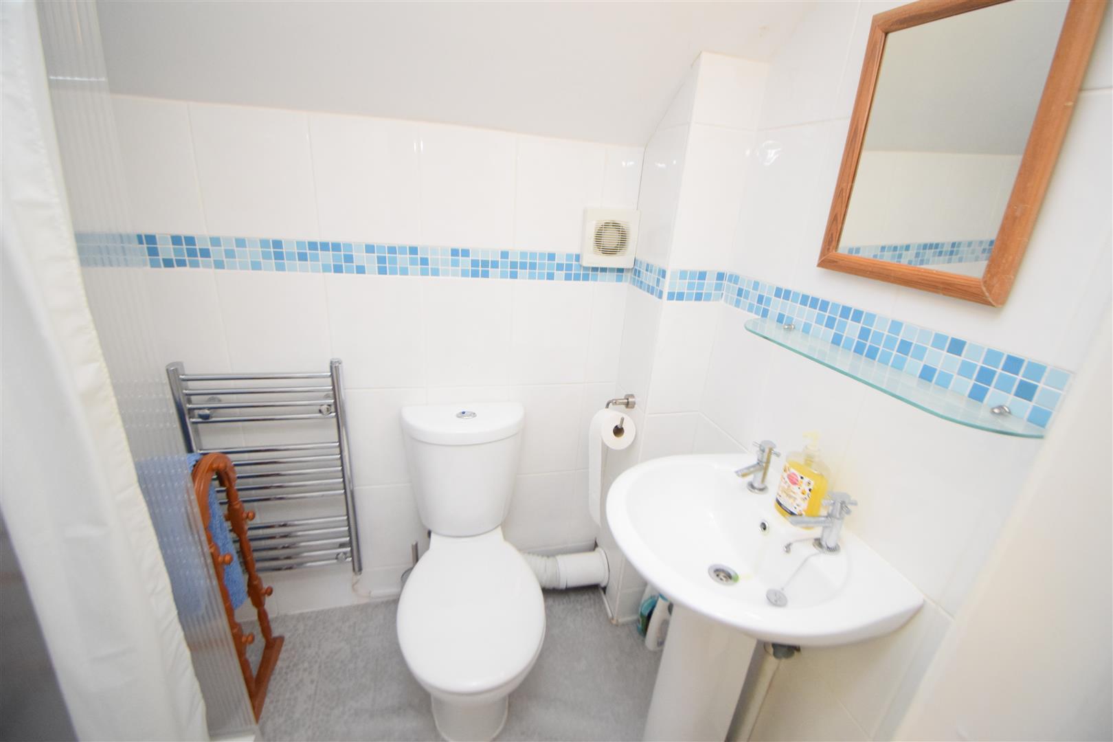 with enclosed shower cubicle, wash hand basin and WC, heated towel rail