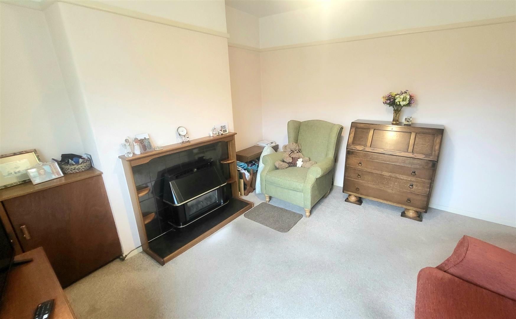 Carpeted, gas fire, uPVC patio doors to rear garden