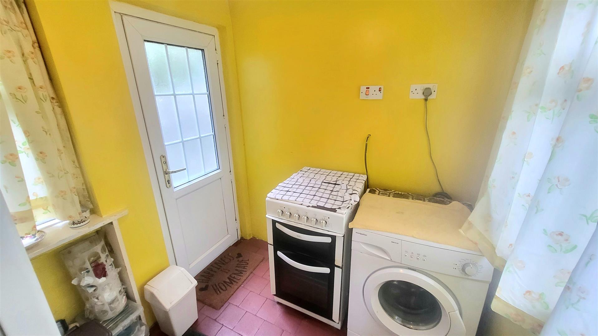 Space and plumbing for washing machine, fridge/freezer, electric cooker, tiled flooring, door leading to outside