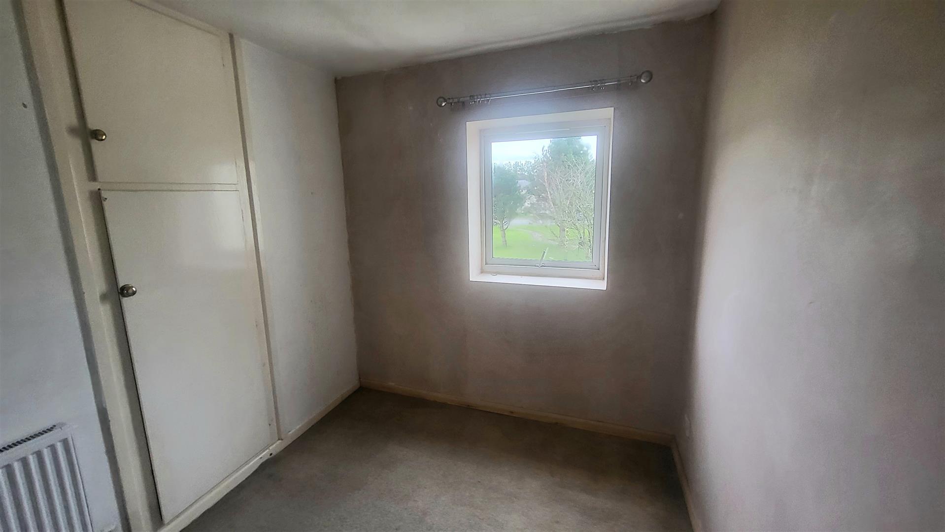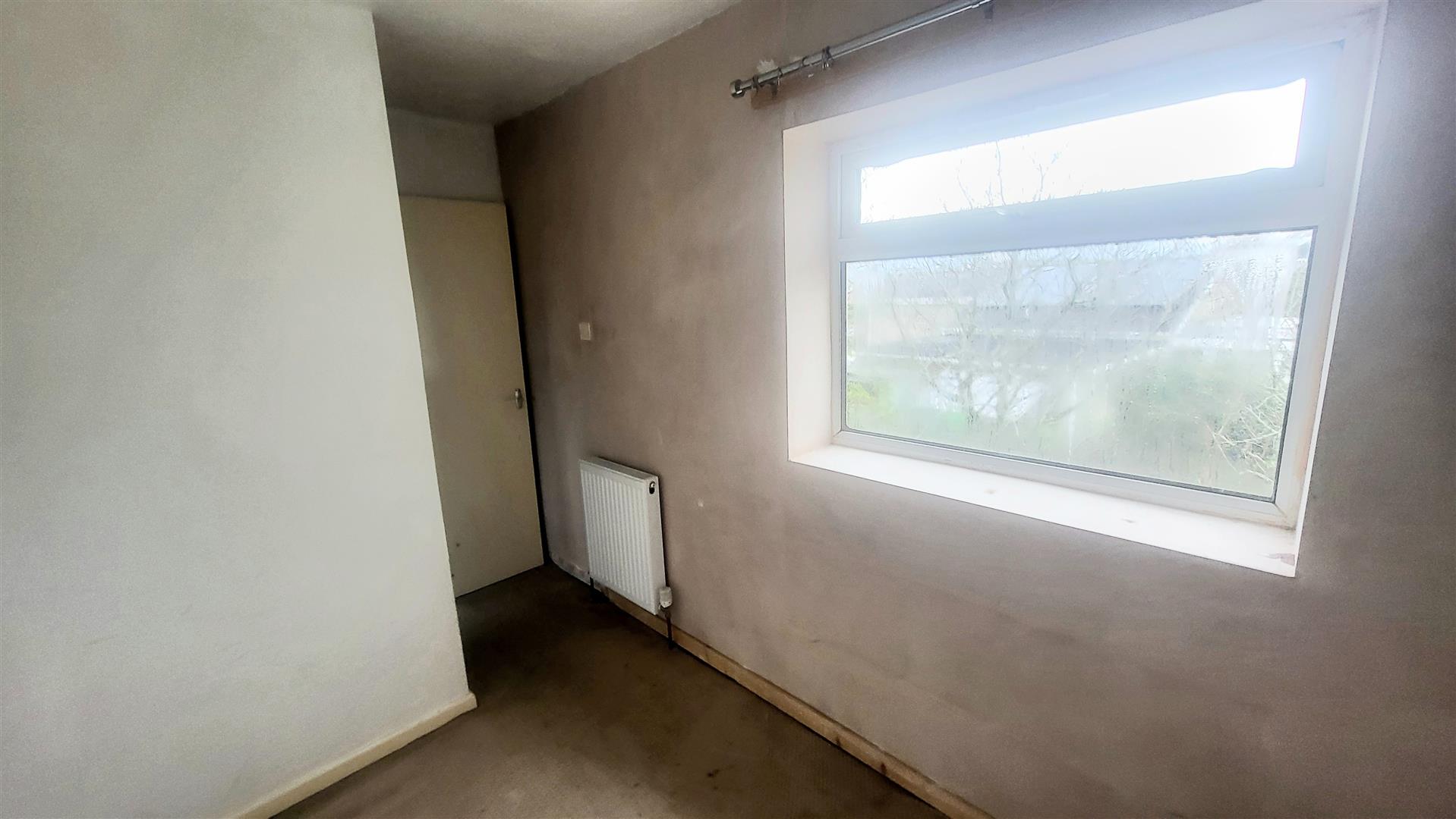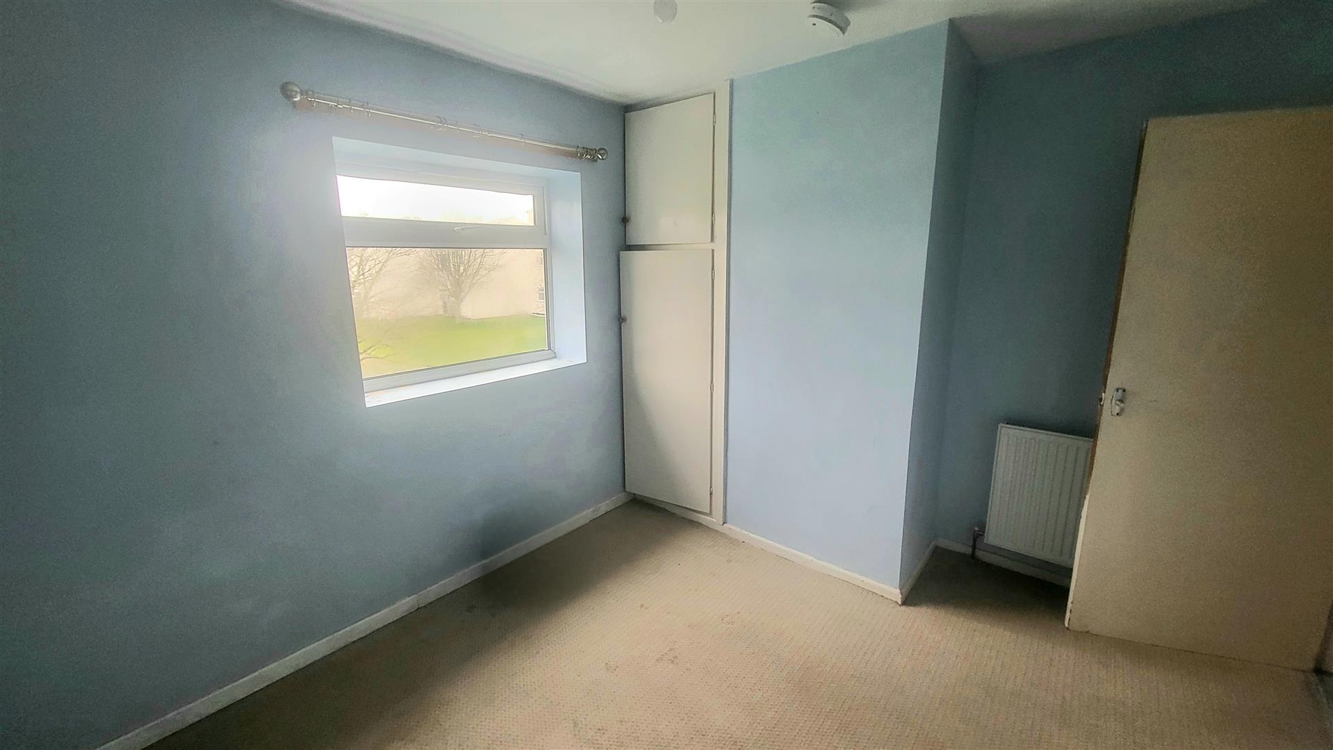 Radiator, single built-in wardrobe with cupboard above, window to rear aspect
