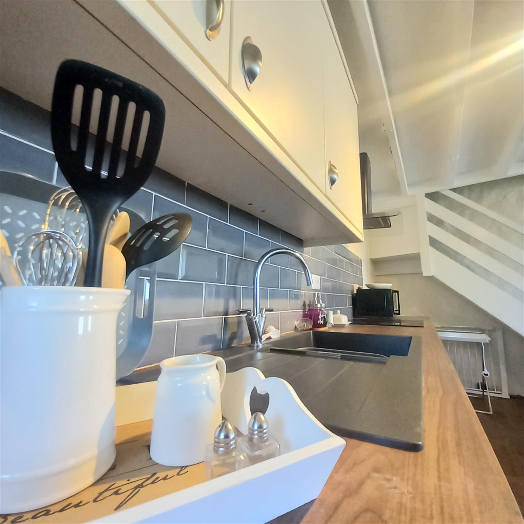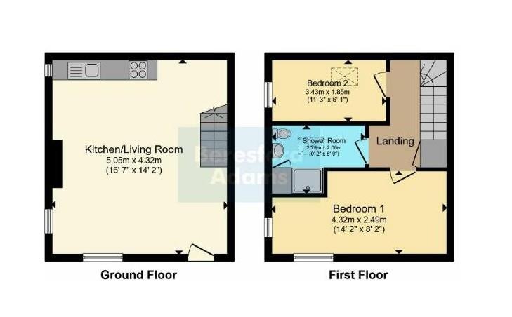 It benefits from a desirable open plan layout to the ground floor with the entrance door leading into a generously proportioned open plan lounge/kitchen with a cosy log burning stove. To the first floor are two bedrooms and family shower room.