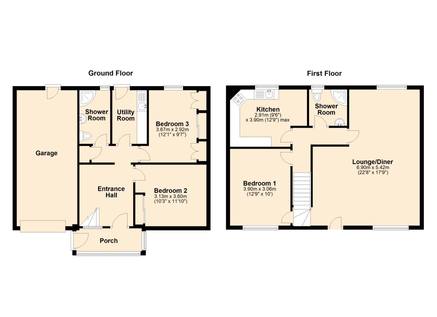 The ground floor has two bedrooms and a bathroom, as well as a useful utility room that has access to the rear garden. A large lounge diner spans front to back of the house with a door opening to a Juliette balcony. There is a further bedroom, bathroom and of course the kitchen to the first floor.